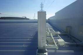 架台は屋根に固定されていますが、前後よりステンレスワイヤーを張り転倒防止を二重で対策